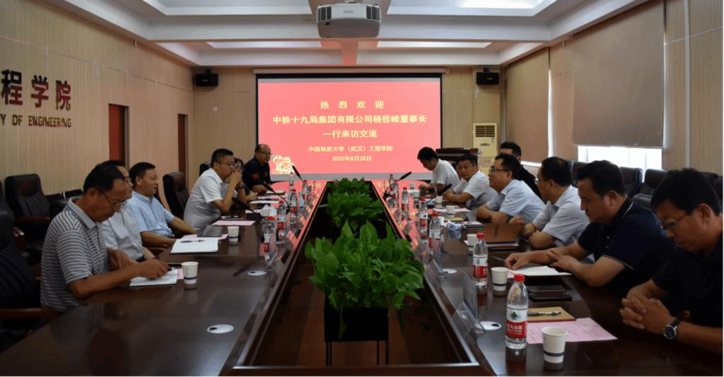 (通讯员王焱)8月28日,中铁十九局有限公司党委书记、董事长、我院1994届工程学院(原探矿工程系)毕业生杨哲峰一行来学院调研交流。校党委副书记王林清,校友工作与教育基金管理处处长徐岩、工程学院党委书记李红丽、院长焦玉勇等双方相关单位负责人参加座谈。徐岩主持座谈会。