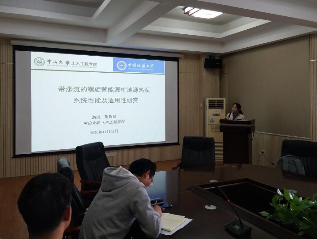 2020年11月3日下午,应工程学院骆进副教授邀请,中山大学游田副教授作客工程文化论坛,在315会议室作了题为“带渗流的螺旋管能源桩地源热泵系统性能及其适用性研究”的学术报告。骆进副教授主持了此次论坛活动,学院50余名师生聆听了学术报告。