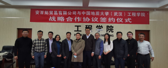 (通讯员:郑君 卢春华)为充分发挥学校与企业的双方优势及高等教育为社会、为企业服务的功能,更好地为社会、为企业培养高素质、高技能的应用型人才,同时也为大学生实习、实训、就业提供更多的空间。在双方共同努力下,12月25日下午,安百拓贸易有限公司与中国地质大学(武汉)工程学院产学研合作签约仪式在工程楼315顺利举行。出席此次签约仪式的嘉宾有安百拓贸易有限公司客户中心总经理卫武贤、人力资源经理袁荃、销售经理鲁浩然、公司大区经理薛尧,中国地质大学(武汉)党委副书记王林清、校友工作与教育基金管理处处长徐岩、工程学院党委书记李红丽、工程学院副院长窦斌、工程学院勘察与基础工程系党支部书记段隆臣、系主任卢春华等。