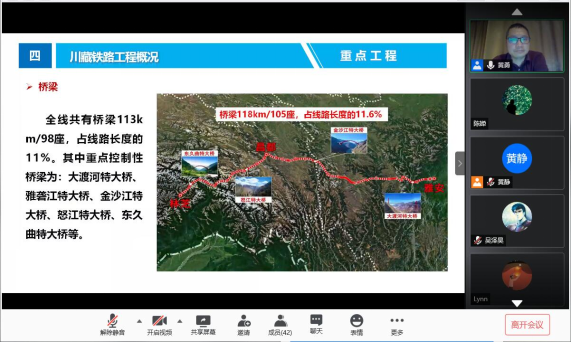 (通讯员:黄静)6月4日下午,我校校友、川藏铁路副总设计师黄勇高级工程师应邀作客2021年第10期工程文化论坛,通过线上腾讯会议为我院师生作学术报告。学院组织师生在工程楼418学术报告厅集中收看报告。工程学院副院长王亮清教授主持报告会,罗学东副院长、蔡记华教授、李长冬教授、张伟丽副教授、程毅副教授等一百余名师生通过线上参会和线下集中收看了此次报告。