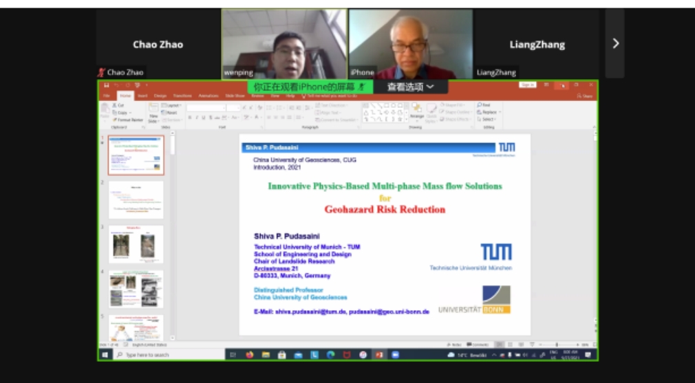 (通讯员:邢磊 赵超)2021年9月27日下午,应“重大地质灾害预测与预防学科”111创新引智基地唐辉明教授和龚文平教授邀请,德国慕尼黑工业大学Shiva P. Pudasaini教授通过Zoom meeting平台为我校师生作线上学术报告。工程学院龚文平教授主持报告会,40余名师生在线聆听了此次报告。