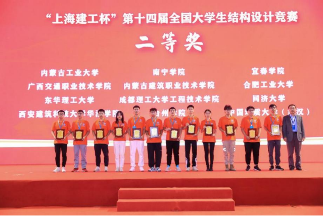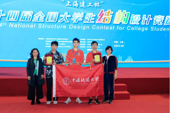 (通讯员:张美霞 王灿)2021年10月13至17日,“上海建工杯”第十四届全国大学生结构设计大赛在上海交通大学举行,历经四天的激烈角逐,大赛在紧张、友好的氛围中圆满闭幕。全国31个省(市、自治区)550所高校、1148支队伍,共选拔出110所高校,112支队伍参加国赛。中国地质大学(武汉)工程学院首次参加国赛,荣获全国二等奖和优秀组织奖。