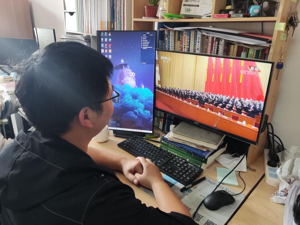 工程学院党委书记李红丽,院长焦玉勇,副院长王亮清、倪晓阳、章广成,院党委副书记高晓东,各教工党支部书记、主任,院直机关全体工作人员及辅导员在工程楼315集中收看,各系(中心)教工党支部在各系会议室集中收看,学生党支部、团支部代表在工程楼418报告厅集中收看,窦斌副院长及学院代表等在东区教学综合楼A0113集中收看,其他师生在各自宿舍、工作室、会议室等通过电脑、手机收听收看。