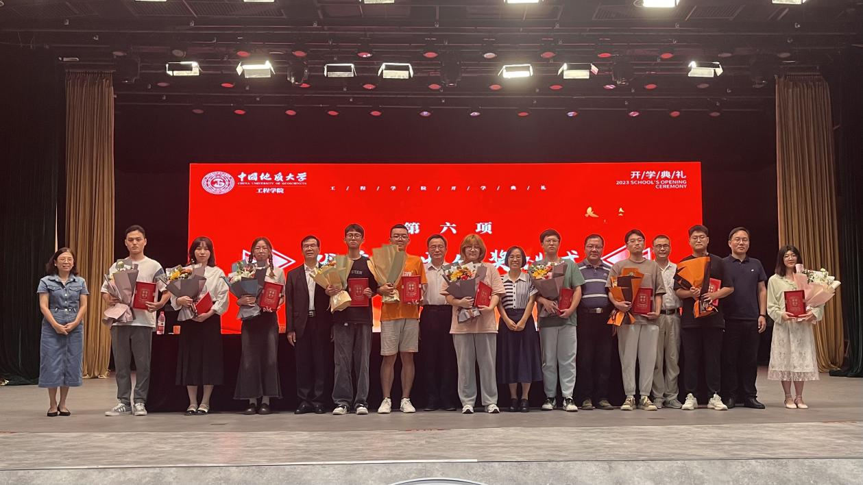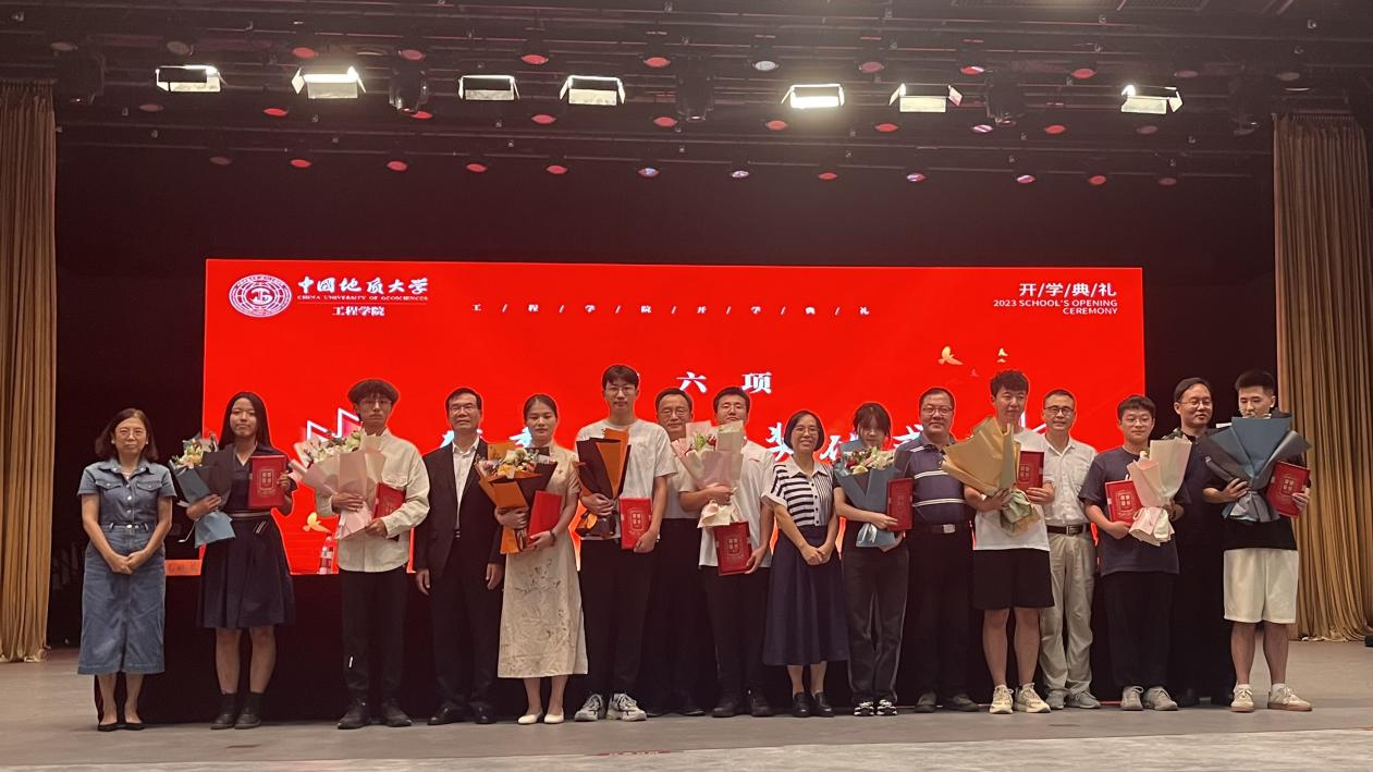 一个榜样就是一面旗帜。为营造“今天看榜样、明天学榜样、将来做榜样”的良好氛围,全体院领导与参会嘉宾为获得“工程学院本科生年度十佳人物”的翟丹阳、李昕、龚祝存、易应民、岳莉娅、李 疆、陈 城、黄灵慧、刘美辰、张文腾等10位本科生颁奖,为获得“工程学院研究生年度十佳人物”的公凯利、张云鹏、陈力博、薛 阳、李庆年、王崧贤、孔繁盛、栗志斌、贾彦平、田晓歌等10位研究生颁奖,为获得“地热知识竞赛”奖项的宇云飞、黄啟亮、李兆森、张佳乐、李泽诚、彭佳乐、张静、杨锴、朱丽等9位同学颁奖,用榜样的力量鼓励2023级全体新生心动起来、行动起来,奋斗起来、优秀起来,直至取得成功。