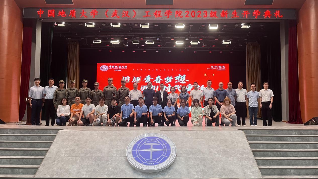 (通讯员 贾彦平)莘莘学子汇江城,工程栋梁破凌云。9月17日下午,中国地质大学(武汉)工程学院2023级新生开学典礼在南望山校区弘毅堂隆重举行。学院党委书记李红丽,党委副书记、院长焦玉勇,党委副书记、纪委书记高晓东,副院长王亮清、窦斌、倪晓阳、章广成,各系教工党支部书记、系主任,学院研究生导师代表,2023级本科生班主任,全体辅导员、军训教官代表以及506名本科生、298名硕士生、56名博士生参加典礼。中建科工旗下中建钢构股份有限公司首席专家、教授级高级工程师、“全国道德模范”、“全国五一劳动奖章”获得者陆建新,工程学院2000级土木工程专业校友、湖北道泽勘测设计院有限公司总工程师谢昭宇两位嘉宾受邀出席。高晓东主持典礼。