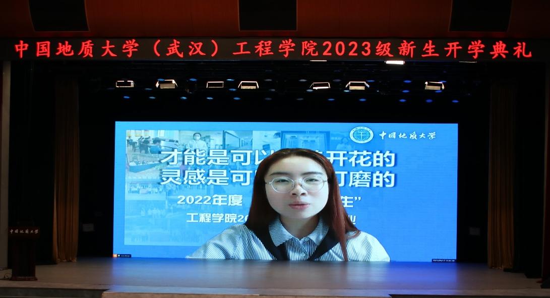 工程学院2023届毕业生、现清华大学工程物理系研究生翟丹阳作为优秀本科生代表,通过视频连线的方式为2023级新生送来祝福与期盼。她鼓励同学们,要将树立崇高理想与坚持脚踏实地结合起来,将抓好课堂学习与用好课余时间结合起来,将学好课本知识与参加科研创新结合起来,将规划大学生涯与铺垫职业生涯结合起来,明确目标、躬耕实践,把握机遇、迎接挑战,掌控航向,做大学生活的主宰;怀揣热爱,奔赴下一场山海!