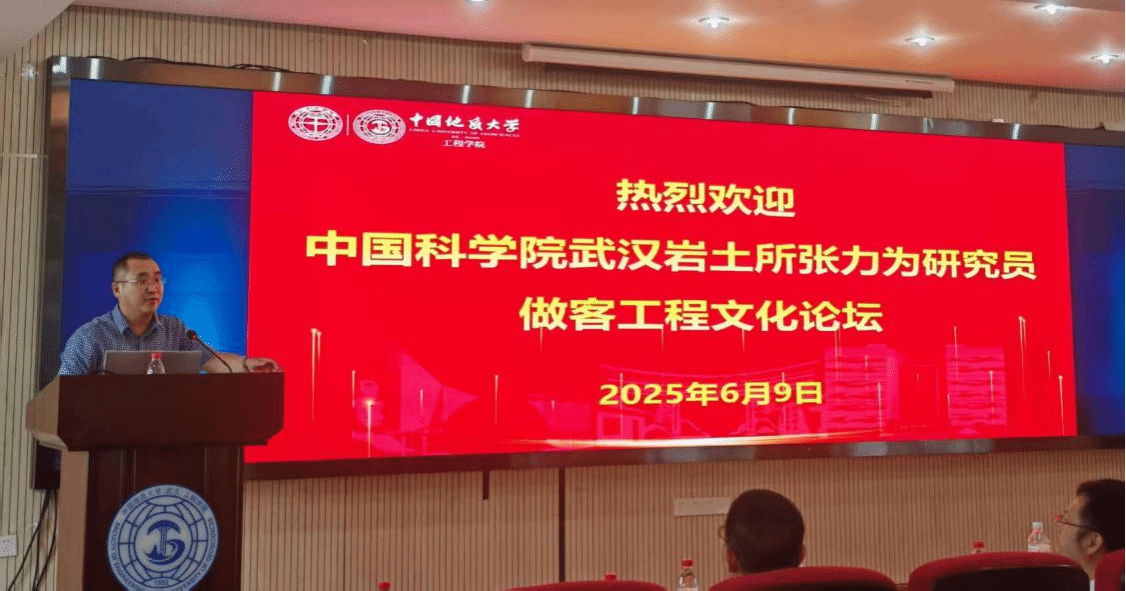 (通讯员 赖侯润 吕祎晔 郑少军)6月9日下午,应工程学院蒋国盛教授和刘天乐教授的邀请,中国科学院武汉岩土所张力为研究员来校访问并作了学术报告。报告会由刘天乐教授主持,张凌副教授、雷刚特任教授等多名师生到现场参加了此次报告会。