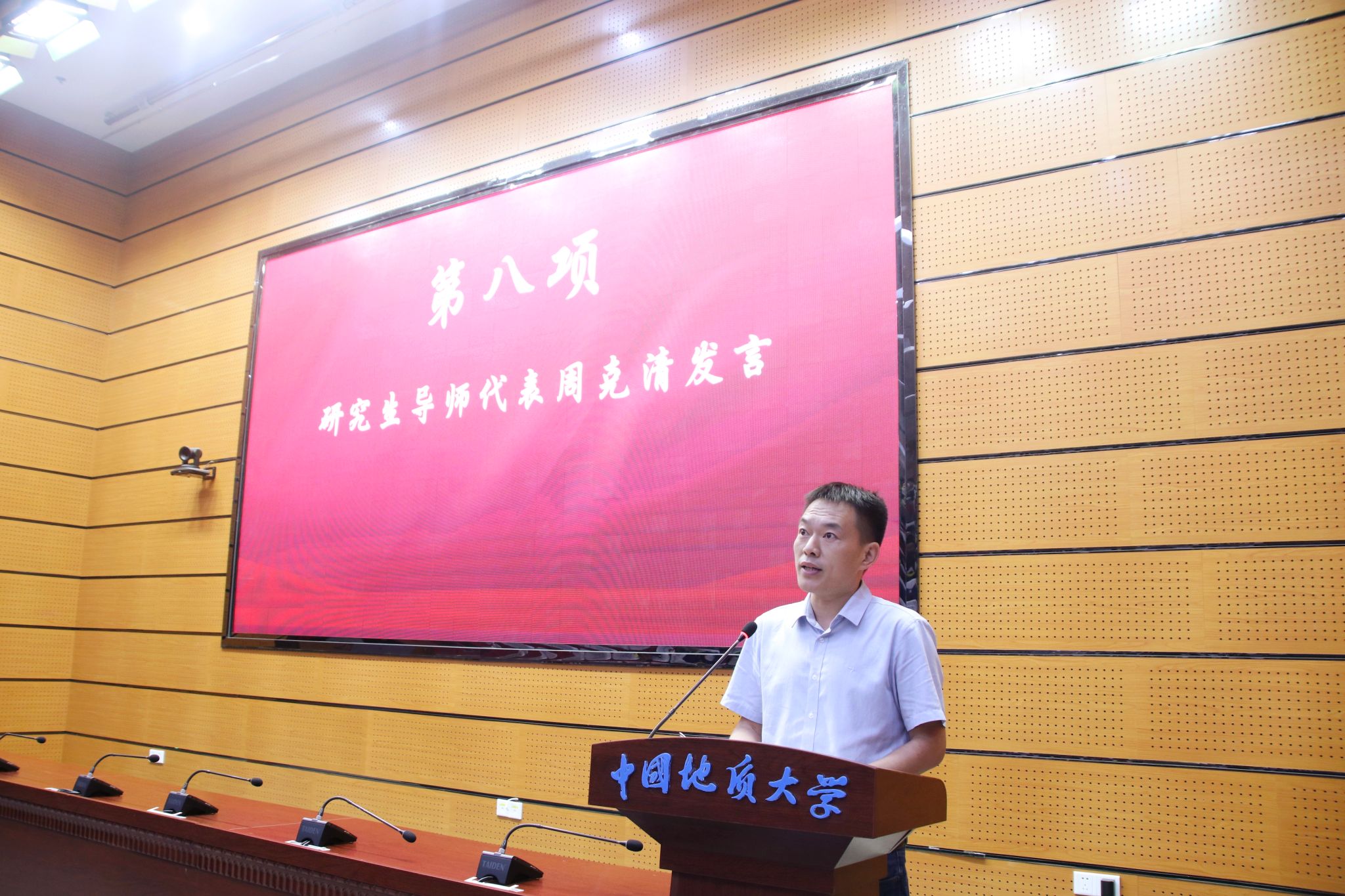 研究生导师代表周克清发言。他向广大毕业生提出殷切期许:一是永葆对大地的深厚情怀,坚守工程人服务国家建设的初心;二是恪守职业良知,涵养浩然正气,做德才兼备的栋梁;三是勇立时代潮头,敢于突破,驱动创新变革;四是胸怀“国之大者”,自觉担当时代赋予的重任。
