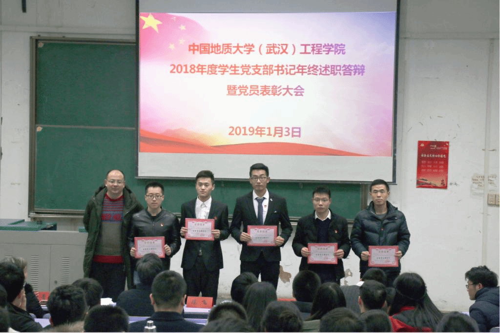 2019年1月3日晚,工程学院2018年度学生党支部书记年终述职答辩暨党员表彰大会在教三楼201和207教室成功举行。